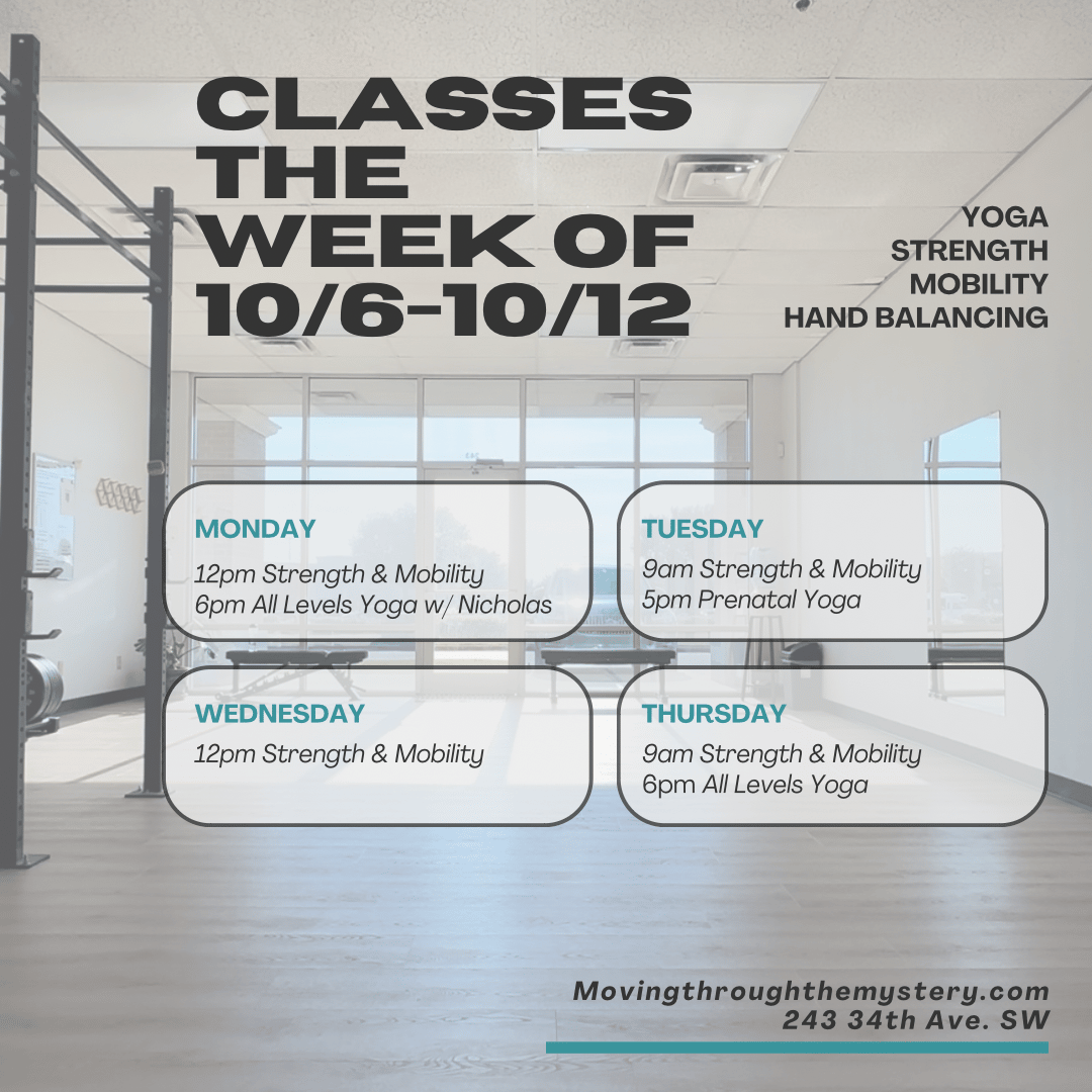 11 months ago • 1 min readDecember 2024 MTTM Grand Opening Join Me for the Grand Opening of Moving Through the Mystery! I am so excited to announce the Grand Opening of Moving Through the Mystery, taking place on Saturday, December 7, 2024, from 9 AM to 1 PM! I hope you will plan to join me at my (nearly) brand new studio located in Red Bud Plaza at 243 34th Ave SW in Norman. This exciting event will feature two special classes designed for everyone, regardless of experience level. Start your day with our All Levels...